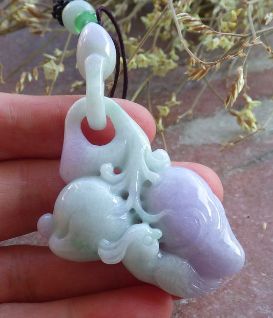 Certified Lavender Green Burma 100% Natural A Jade jadeite Pendant Dragon Mouse Rat Peanut Ruyi Necklace 望子成龙 650354 TN