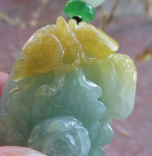 Certified Yellow Green Burma 100% Natural A Jade jadeite Pendant Butterfly Flower Necklace 蝴蝶 花开富贵 650438 TN
