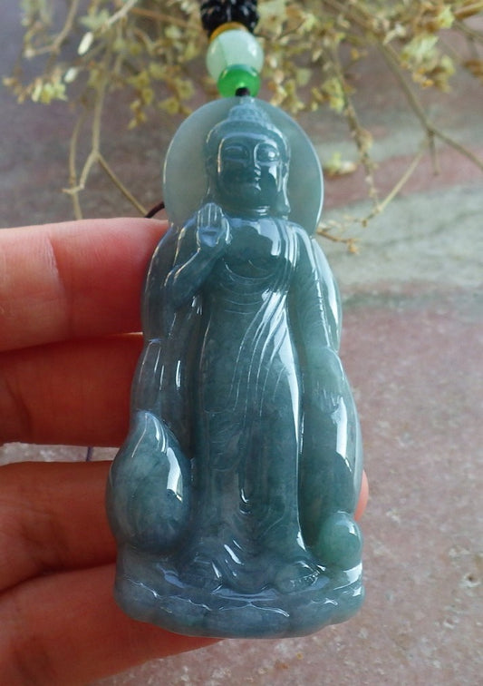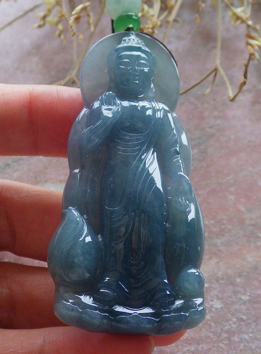 Certified Icy Green Burma 100% Natural A Jade jadeite pendant Sakyamuni Buddha God Necklace 释迦牟尼 650599 TN