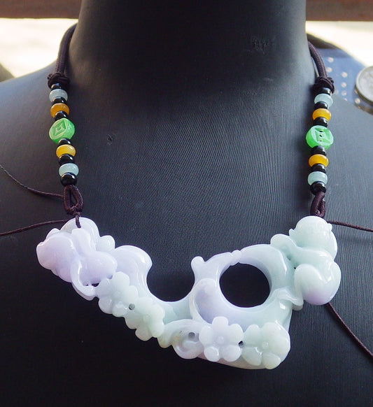 Certified Lavender Green Burma 100% Natural A Jade jadeite Pendant Rabbit Monkey Flower Coin Necklace 兔子 650559 TN