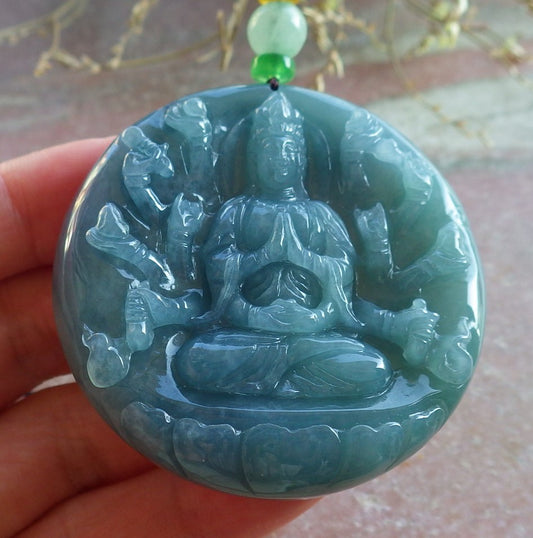 Certified Icy Green Pale Lavender Burma 100% Natural A Jade jadeite Pendant 1000 Hand Guanyin Kwan Yin Lotus Flower Necklace 观音 650569 TN