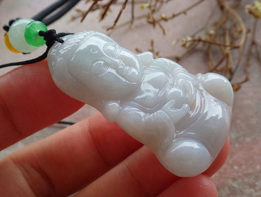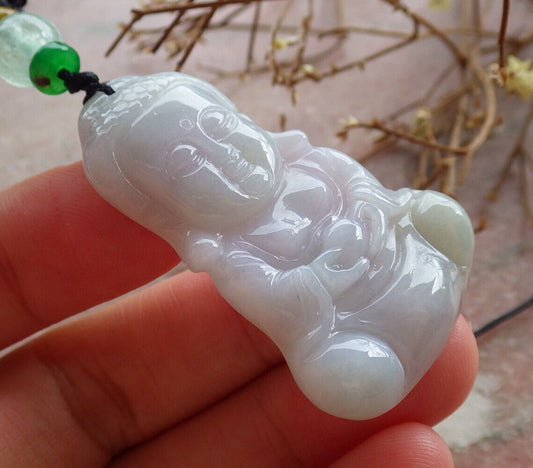 Certified Green Pale Lasvender Burma 100% Natural A Jade jadeite Pendant Sakyamuni Buddha God Necklace 释迦牟尼佛 635373 TN