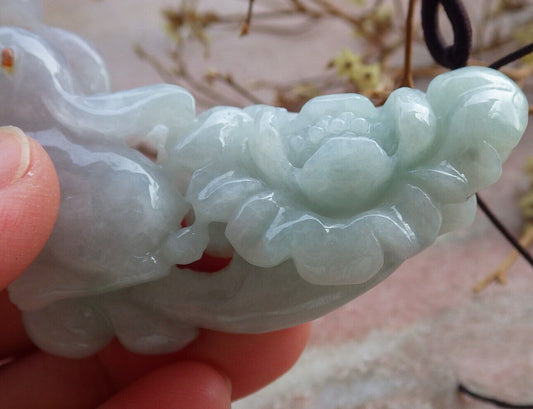 Certified Green Pale Lavender Burma 100% Natural A Jade jadeite Pendant Rabbit Flower Coin Ruyi Necklace 兔子 635206 TN