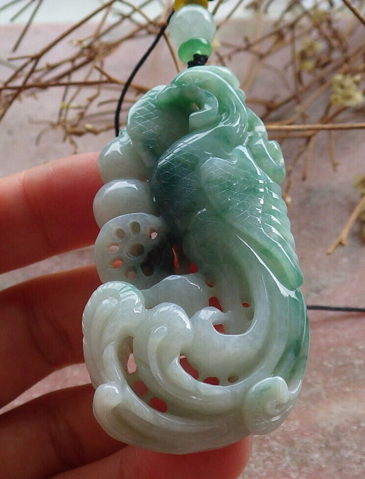 Certified Green Burma 100% Natural A Jade jadeite Pendant Phoenix Bird Flower Necklace 鸟语花香 635267 TN