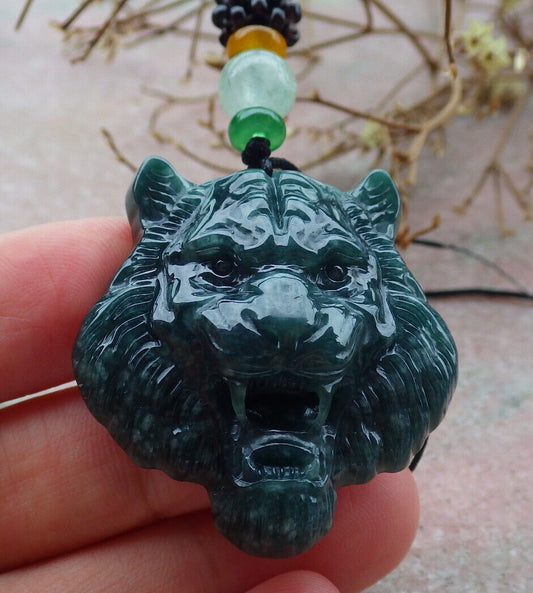 Certified Icy Blue Water Burma 100% Natural A Jade jadeite Pendant Tiger Head Necklace 虎虎生威 635303 TN