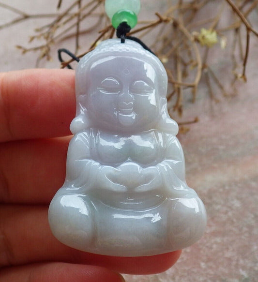 Certified Green Pale Lasvender Burma 100% Natural A Jade jadeite Pendant Sakyamuni Buddha God Necklace 释迦牟尼佛 635381 TN
