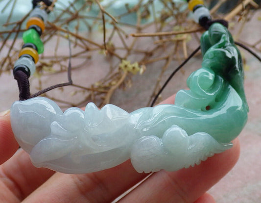 Certified Green Burma 100% Natural A Jade jadeite Pendant Dragon Bead Necklace 生意兴隆 635341 TN