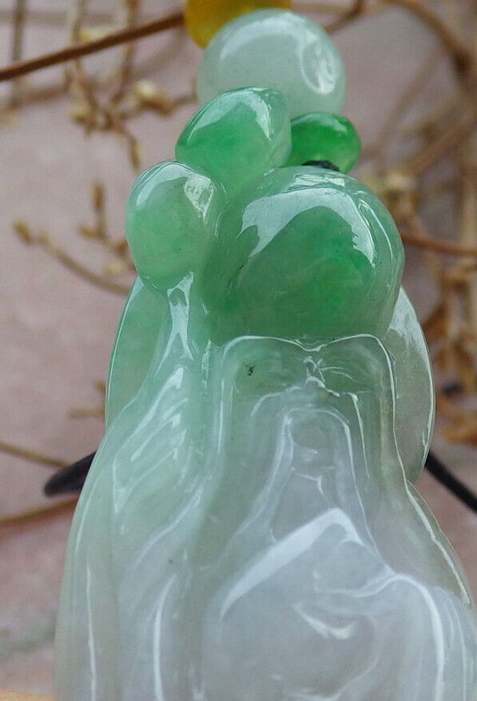 Certified Green Burma 100% Natural A Jade jadeite Pendant Longevity God Peach Necklace 寿星公 635522 TN