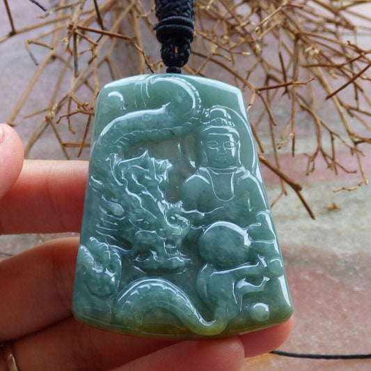 Certified Green Yellow 100% Natural A Jade jadeite Pendant Guanyin Kwan Yin Dragon Necklace 观音 528806 TN