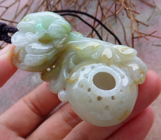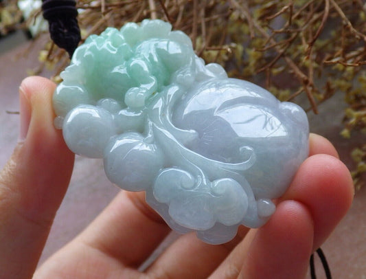 Certified Green Pale Lavender 100% Natural A Jade jadeite Pendant Dragon Pi Xiu Bat Peach Ruyi Money Coin Necklace 风水貔貅 528788 TN
