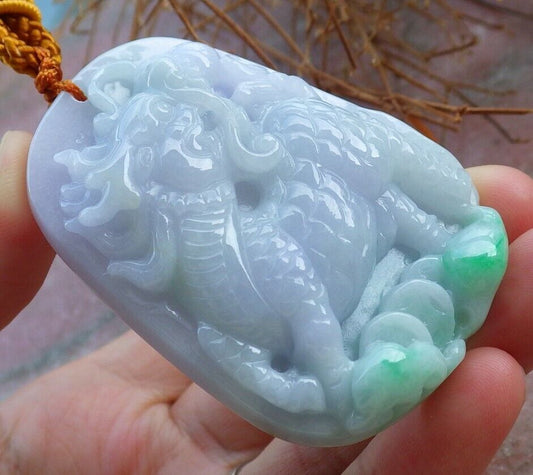 Certified Green Pale Lavender 100% Burma Natural A Jade jadeite Pendant Dragon Kai Lotus Flower Ruyi Money Coin Necklace 龙 麒麟 522362 TN