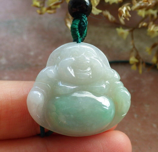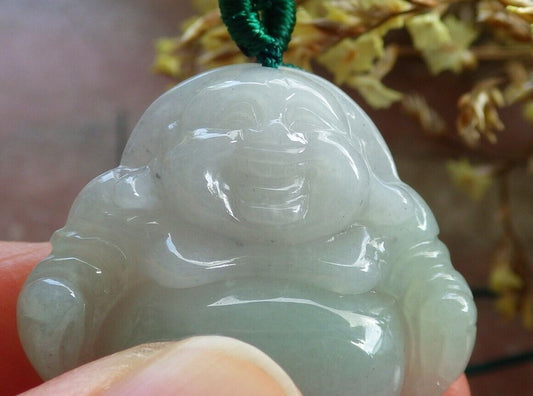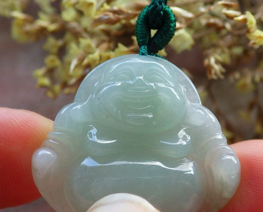 Certified Icy Green 100% Natural A Jade jadeite pendant Happy Buddha God Necklace 开心佛 524358 TN