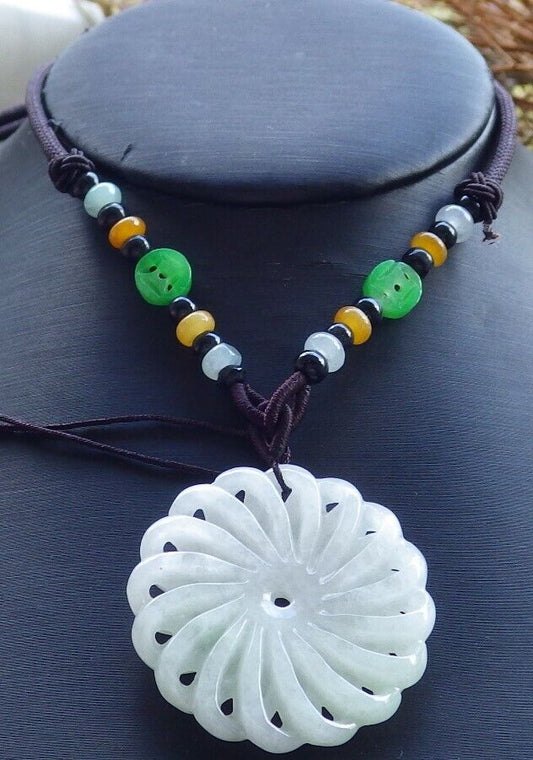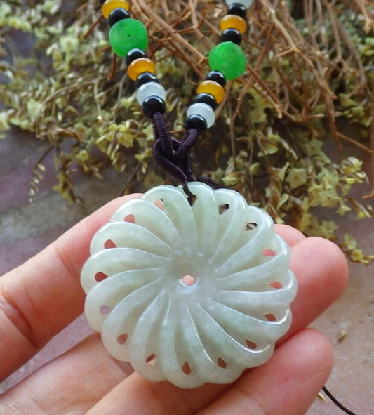 Certified Green 100% Natural A Jade jadeite pendant Knotted Flower Circle Necklace 花开富贵 524091 TN