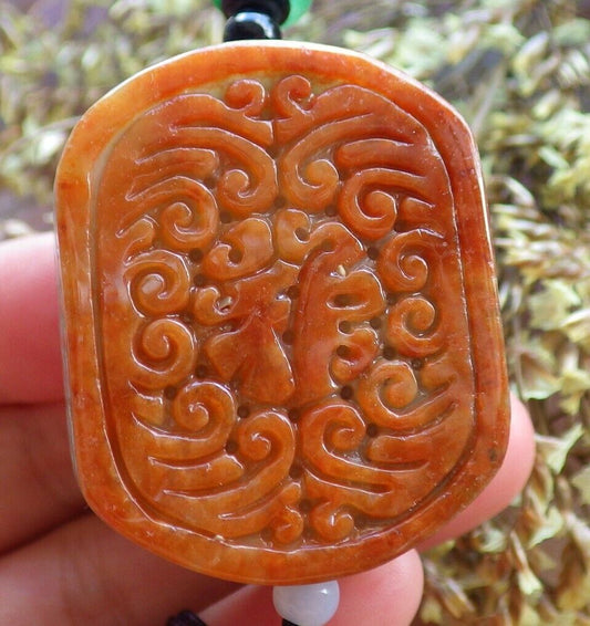 Certified Brown Red Green 100% Natural A Jade jadeite Pendant Dragon Phoenix Longevity Ruyi Necklace 龙凤 524084 tn