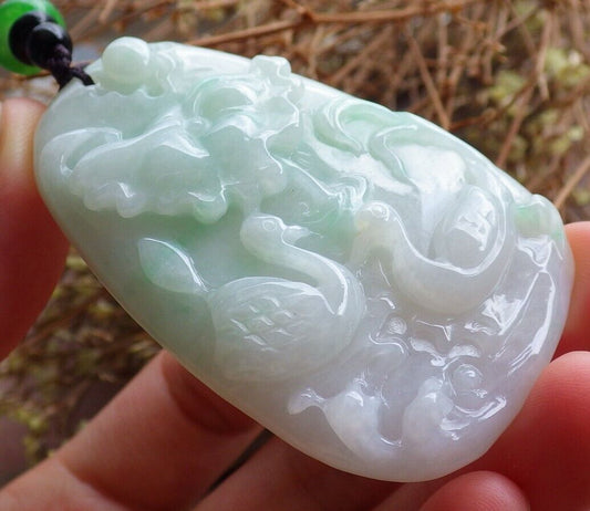 Certified Green 100% Natural A Jade jadeite Pendant Mandarin Duck Phoenix Lotus Leaf Necklace 鸳鸯 524651 TN