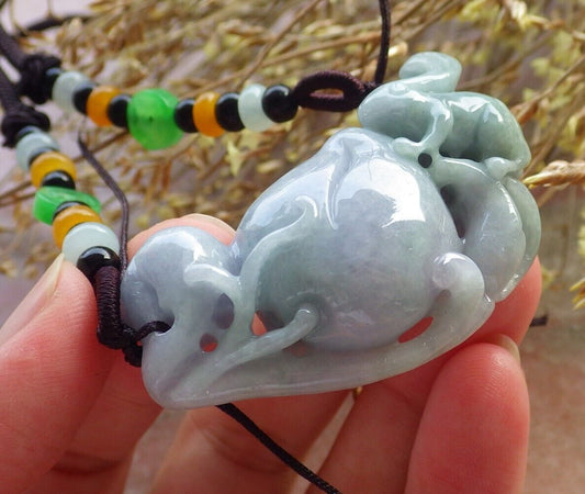 Certified Green Pale Lavender Burma 100% Natural A Jade jadeite Pendant Rabbit Coin Peach Necklace 兔子 575401 TN