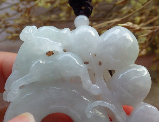 Certified Green Pale Lavender Burma 100% Natural A Jade jadeite Pendant Deer Peach Ruyi Circle Coin Necklace 梅花鹿 575515 TN