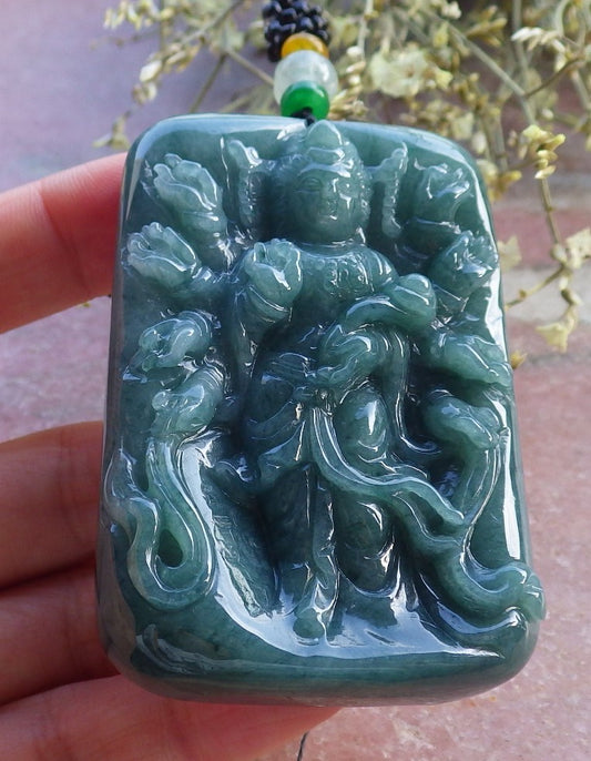 Certified Green Burma 100% Natural A Jade jadeite Pendant 1000 Hand Guanyin Kwan Yin Lotus Flower Necklace 观音 649009 TN