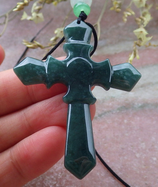 Certified Icy Green Burma 100% Natural A Jade jadeite Pendant Jesus Cross Necklace 十字架 649223 TN