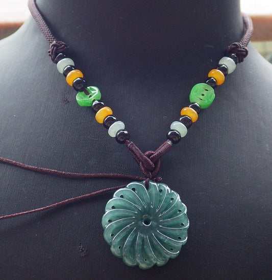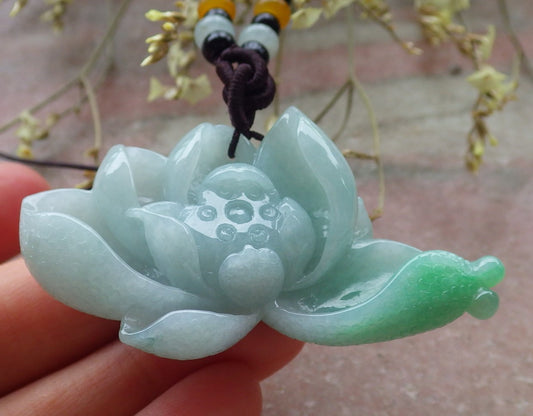 Certified Green Burma 100% Natural A Jade jadeite pendant Lotus Flower Necklace 花开富贵 649330 TN