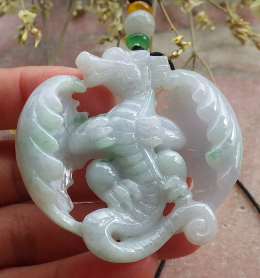 Certified Lavender Green Burma 100% Natural A Jade jadeite Pendant Flying Dragon Necklace 生意兴隆 649381 TN