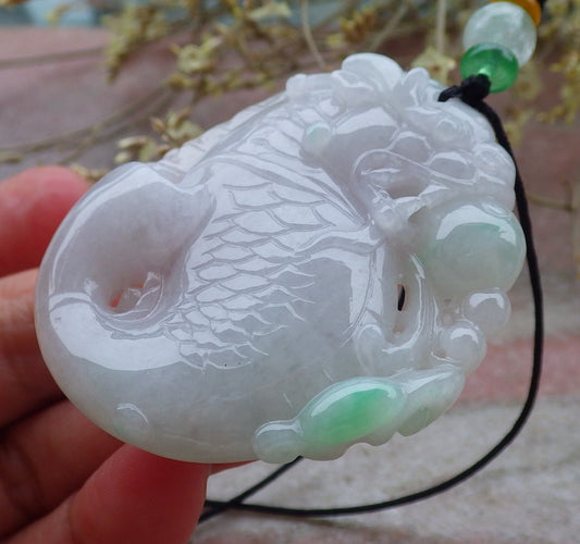 Certified Green Burma 100% Natural A Jade jadeite Pendant Dragon Fish Ruyi Necklace 龙鱼 649612 TN