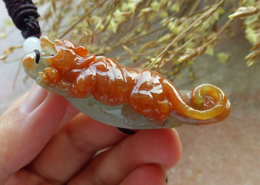 Certified Red Green Burma 100% Natural A Jade jadeite Pendant Tiger Yuan Bao Necklace 虎虎生威 575613 TN