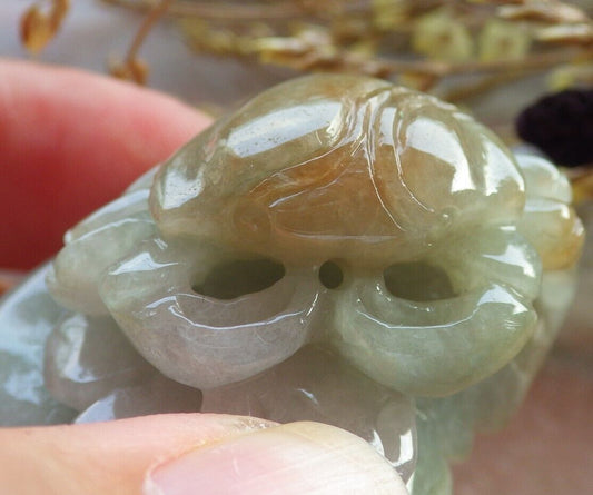 Certified Red Green Burma 100% Natural A Jade jadeite pendant Crab Ruyi Coin Necklace 八方来财 575409 TN