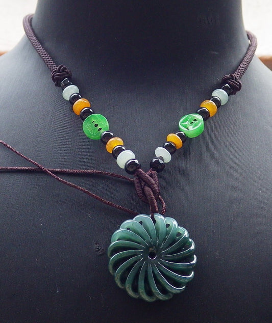 Certified Icy Green Burma 100% Natural A Jade jadeite pendant Knotted Flower Necklace 花开富贵 649238 TN
