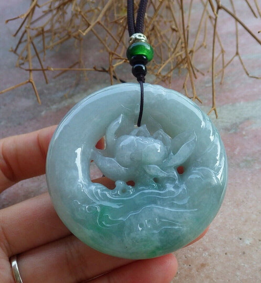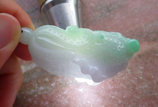 Certified Green Pale Lavender 100% Burma Natural A Jade jadeite pendant Dragon Fish Money Coin Necklace 龙鱼 518902 TN
