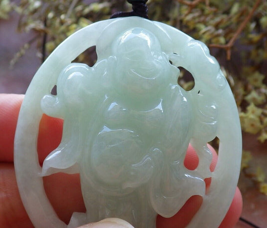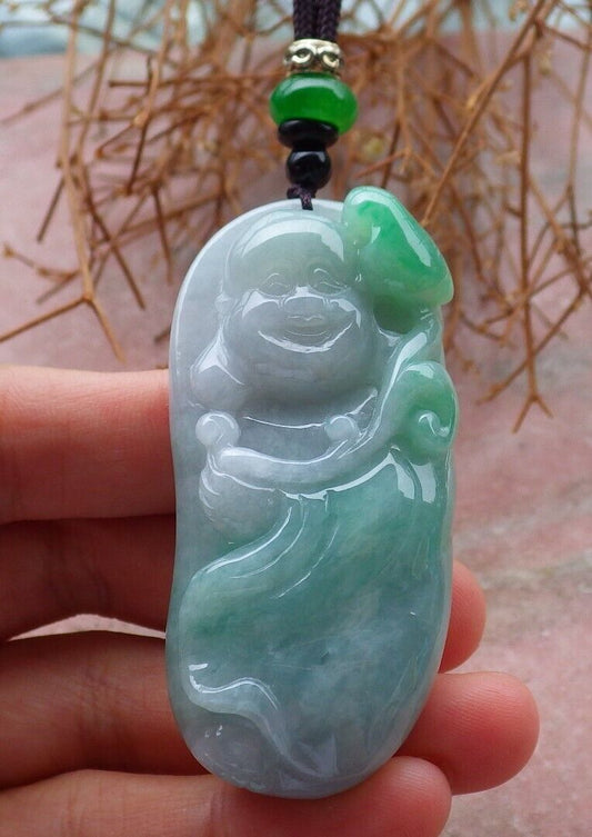 Certified Green 100% Natural A Jade jadeite pendant Happy Buddha God Necklace 开心佛 521299 TN