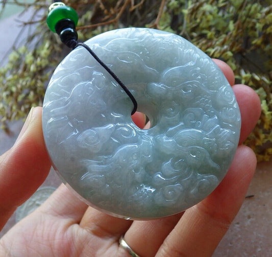 Certified Green 100% Burma Natural A Jade jadeite pendant Dragon Bead Necklace 生意兴隆 518877 TN