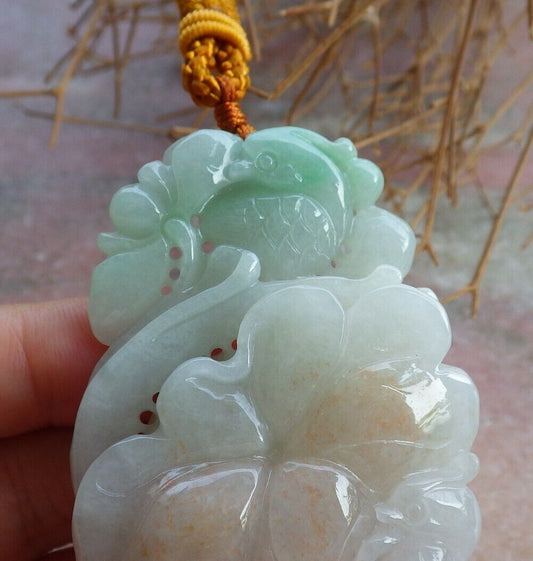 Certified Green Pale Red 100% Natural A Jade jadeite Pendant Mandarin Duck Phoenix Lotus Flower Leaf Ruyi Money Coin Necklace 鸳鸯 521071 TN