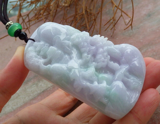 Certified Green Pale Lavender 100% Natural A Jade jadeite Landscape painting Tree Necklace 山水画 521223 TN