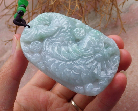 Certified Green 100% Burma Natural A Jade jadeite pendant Dragon Lotus Flower Ruyi Bead Necklace 生意兴隆 518842 TN