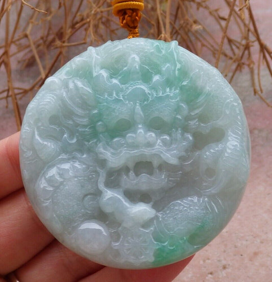 Certified Green 100% Natural A Jade jadeite pendant Dragon Mouse Rat Bead Circle Necklace 望子成龙 519590 TN