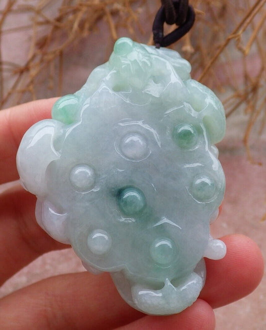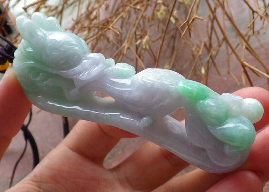 Certified Green Pale Lavender 100% Natural A Jade jadeite Pendant Dragon Pi Xiu Bat Lotus Flower Ruyi Hook Necklace 龙钩 517612 TN
