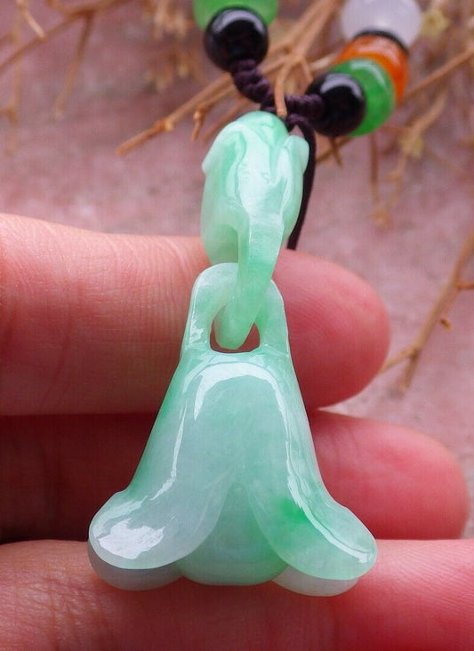 Certified Green 100% Natural A Jade jadeite pendant Rose Flower Necklace W Ring 花开富贵 517015 TN