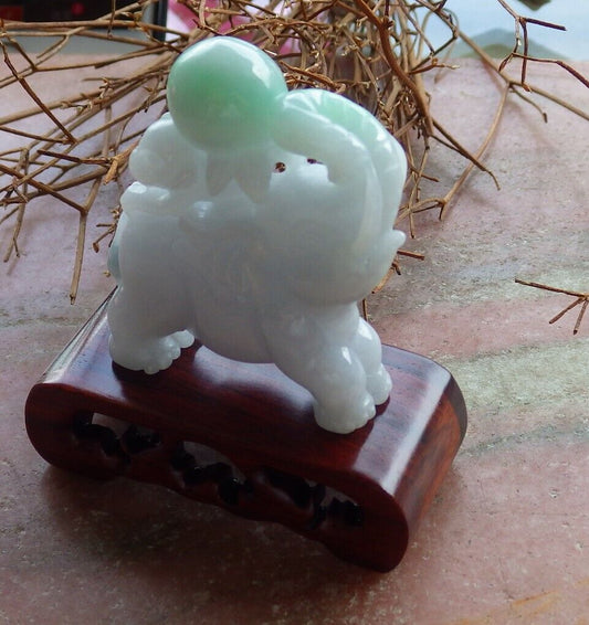 Certified Green Pale Lavender 100% Natural A Jade jadeite Display Elephant Monkey Peach 封侯拜相 528499 TN** Include woodstand **