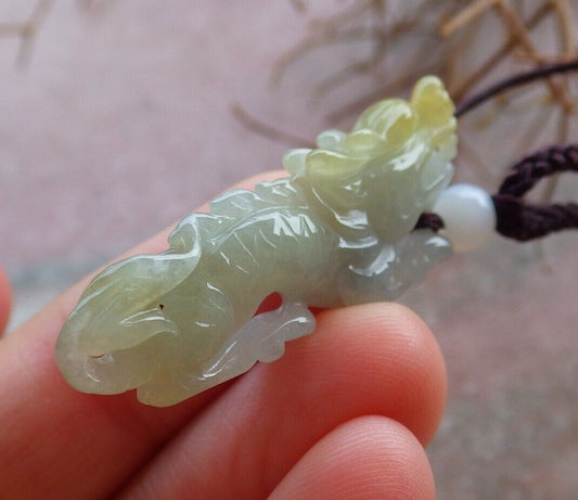 Certified Yellow 100% Natural A Jade jadeite pendant Dragon Necklace 生意兴隆 526193 TN