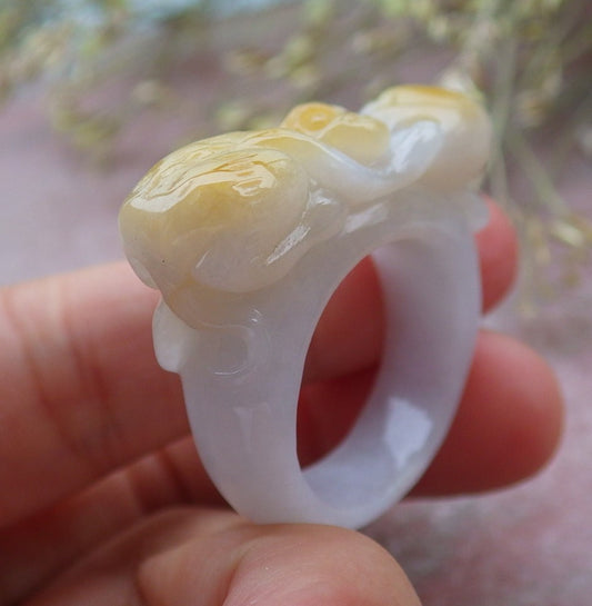 Certified Yellow Burma 100% Natural A JADE Jadeite Monkey Peach RING USA. 10.25 戒指 641260 TN