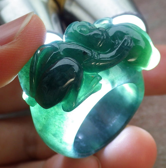 Certified Icy Green Burma 100% Natural A JADE Jadeite Monkey Peach RING USA. 10 戒指 641616 TN
