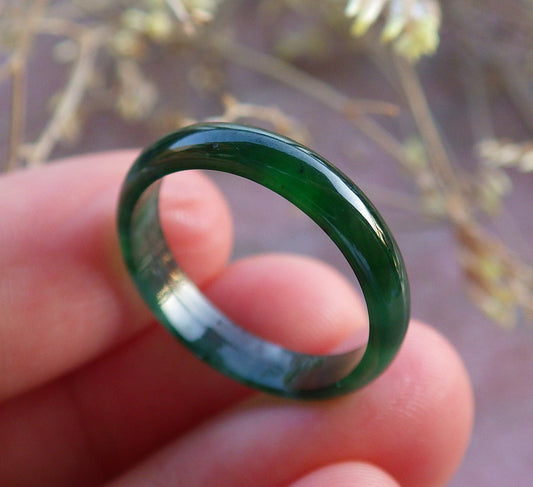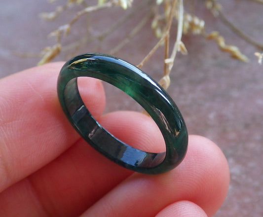 Certified Icy Green Burma 100% Natural A JADE Jadeite Circle RING USA. 7.75 戒指 642185 TN