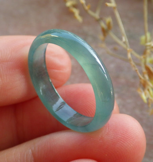Certified Icy Green Burma 100% Natural A JADE Jadeite Circle RING USA. 7.75 戒指 644820 TN