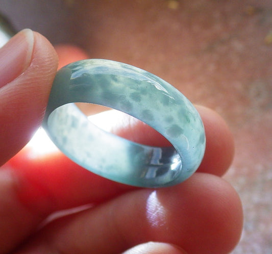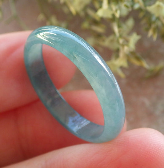 Certified Icy Lavender Green Burma 100% Natural A JADE Jadeite Circle RING USA. 7.75 戒指 641534 TN