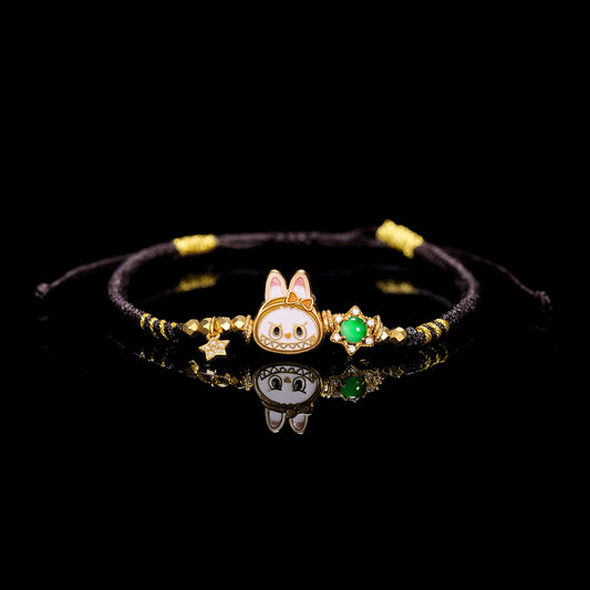 S925 Silver labubu with Natural jade hand woven rope(Adjustable length)