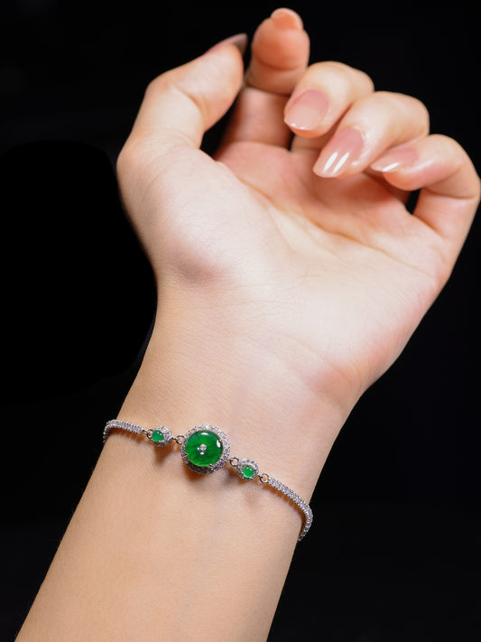 The Bracelet S925 Silver With Burma Natural jade (Cricle Button Style)
