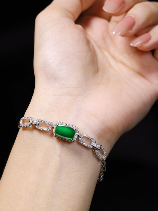 The Bracelet S925 Silver With Burma Natural jade ( Ring Face Style)