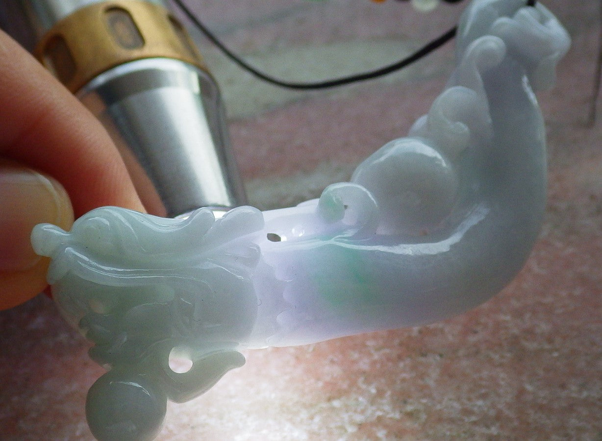 Certified Green Pale Lavender Burma 100% Natural A Jade jadeite Pendant Dragon Coin Bead Necklace 生意兴隆 634538