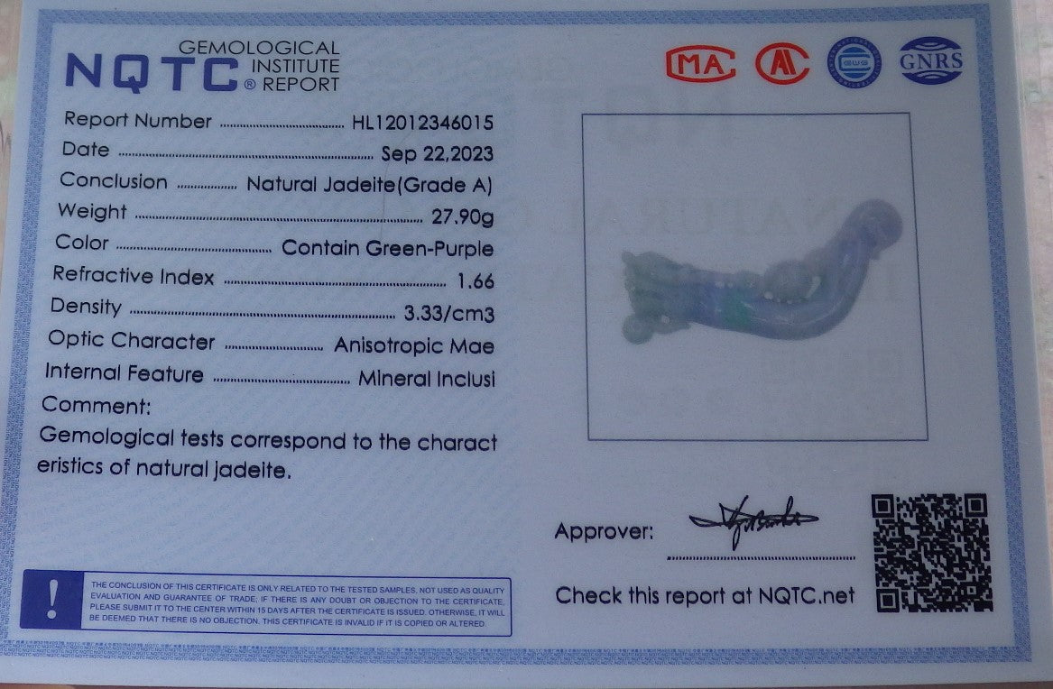 Certified Green Pale Lavender Burma 100% Natural A Jade jadeite Pendant Dragon Coin Bead Necklace 生意兴隆 634538 TN